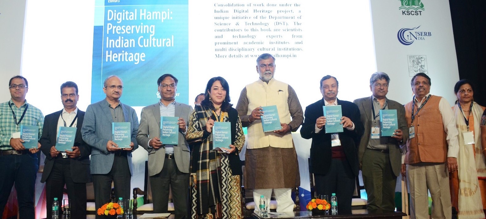 As co-editor and co-authors of several chapters in the Springer volume Digital Hampi: Preserving the Indian Cultural Heritage, Professors Vijay Chandru and Uma V Chandru were invited to join in the book release by the Hon. Minister of State for Tourism, Shri Prahlad Singh Patel in the inaugural session of the IHSE Symposium (Jan 15, 2020).